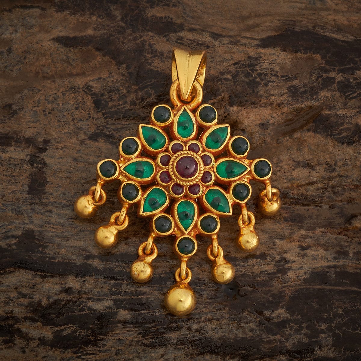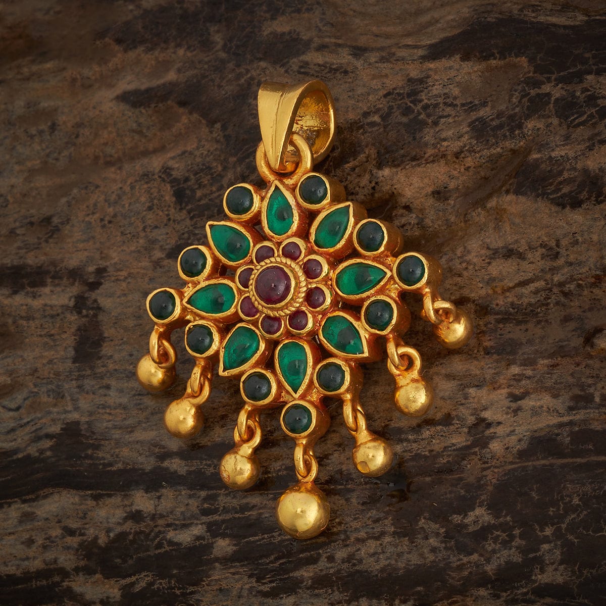 Kushal's Fashion Jewellery 92.5 Pure Silver Flower Motif Temple Pendant
