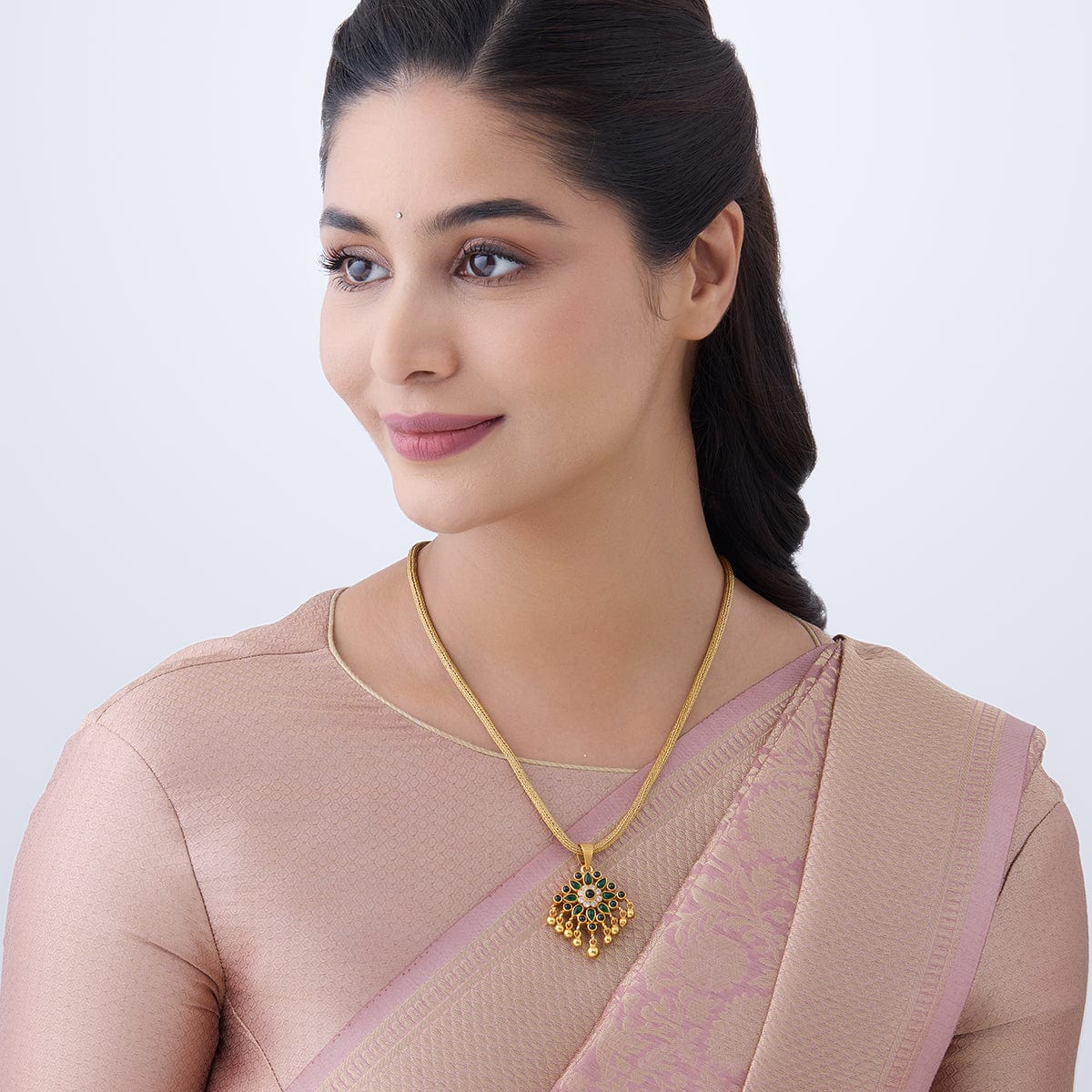 Prepare to stand out from the crowd with the Silver Temple pendant, a masterpiece with a captivating design! This pendant exudes elegance and charm, featuring a beautiful flower. Its eye-catching gold polish and unique design ensure all eyes will be on you. Wear it with your favorite ethnic dress to add a touch of class.