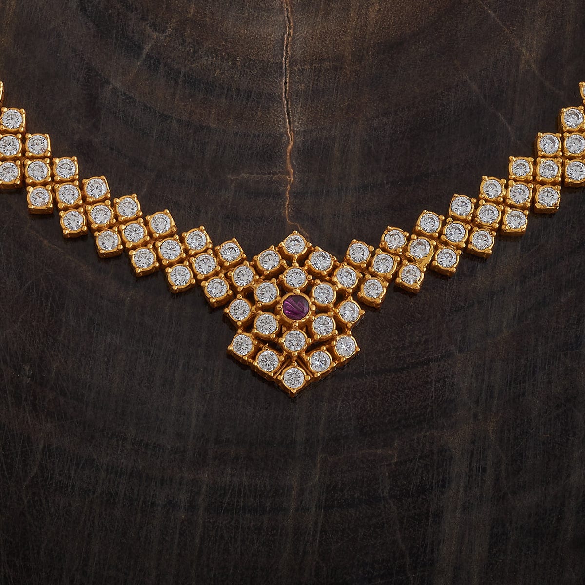 92.5 Pure Silver Flower Motif Temple Necklace