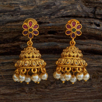 Elevate your kurtas and kurtis with these exquisite antique jhumkas! Kushal's Fashion Jewellery offers beautiful antique jhumkas adorned with small ruby-green synthetic stones, and delicate beads, and finished with a gold polish. Perfect for adding a touch of traditional charm to your everyday outfits, these earrings bring a sophisticated elegance to your look, making them an ideal accessory for any occasion.
