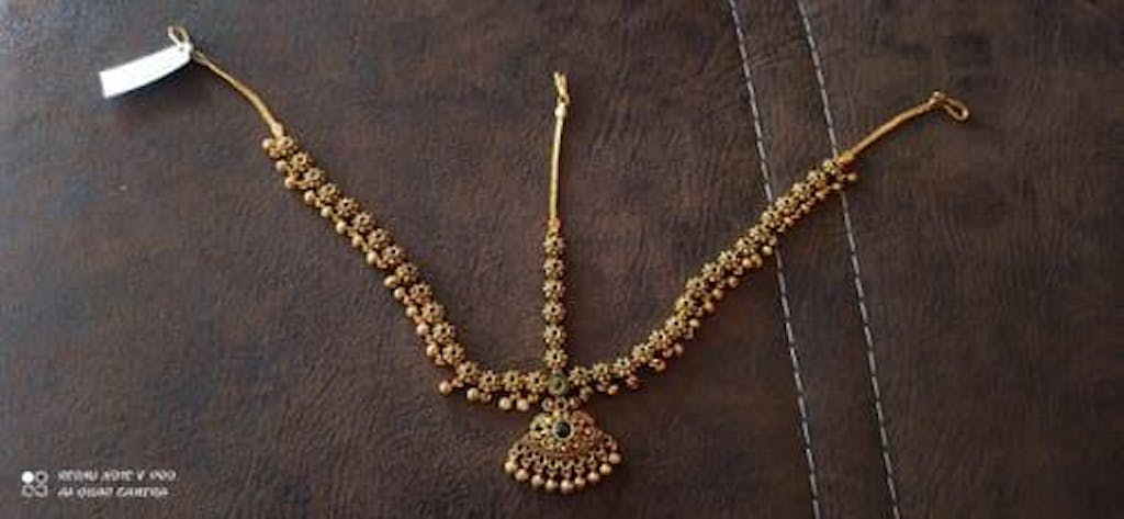 Maang tikka, made for the perfect bling, was developed for today's society. A maang tikka is perfect for every occasion and comes in various colors to suit your unique preferences. This maang tikka is constructed of ruby-green, green and ruby beads, and artificial stones, giving you a festive look. It has a floral motif with rubies incorporated in it.