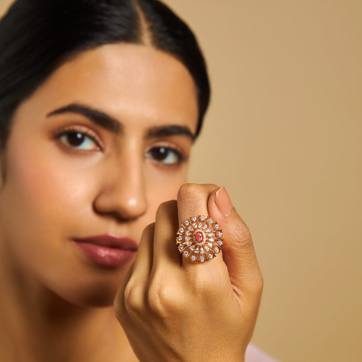Flower Motif Zircon Finger Ring