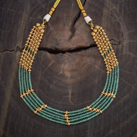 Upgrade your ethnic collection with this exquisite antique mala from Kushal's Fashion Jewellery. Designed with stunning green synthetic stones and crafted from copper alloy, this piece boasts a rich gold polish for a traditional yet chic appeal. The layered necklace style and adjustable thread ensure a comfortable fit.