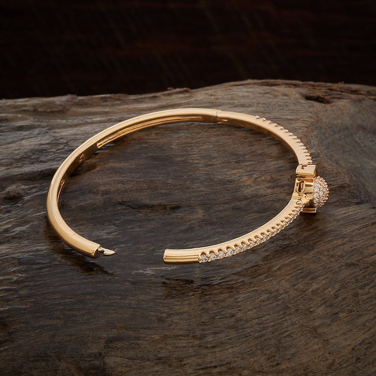 Kushal's zircon kada is lightweight and made up of copper alloy. It features white zircons and boasts a radiant finish in your choice of gold or rose gold. The secure locking system ensures a comfortable and worry-free fit all day long. Enhance your wrist with this piece, the perfect addition to any special occasion.