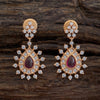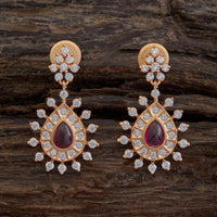 Flower and Teardrop Motif Zircon Earring
