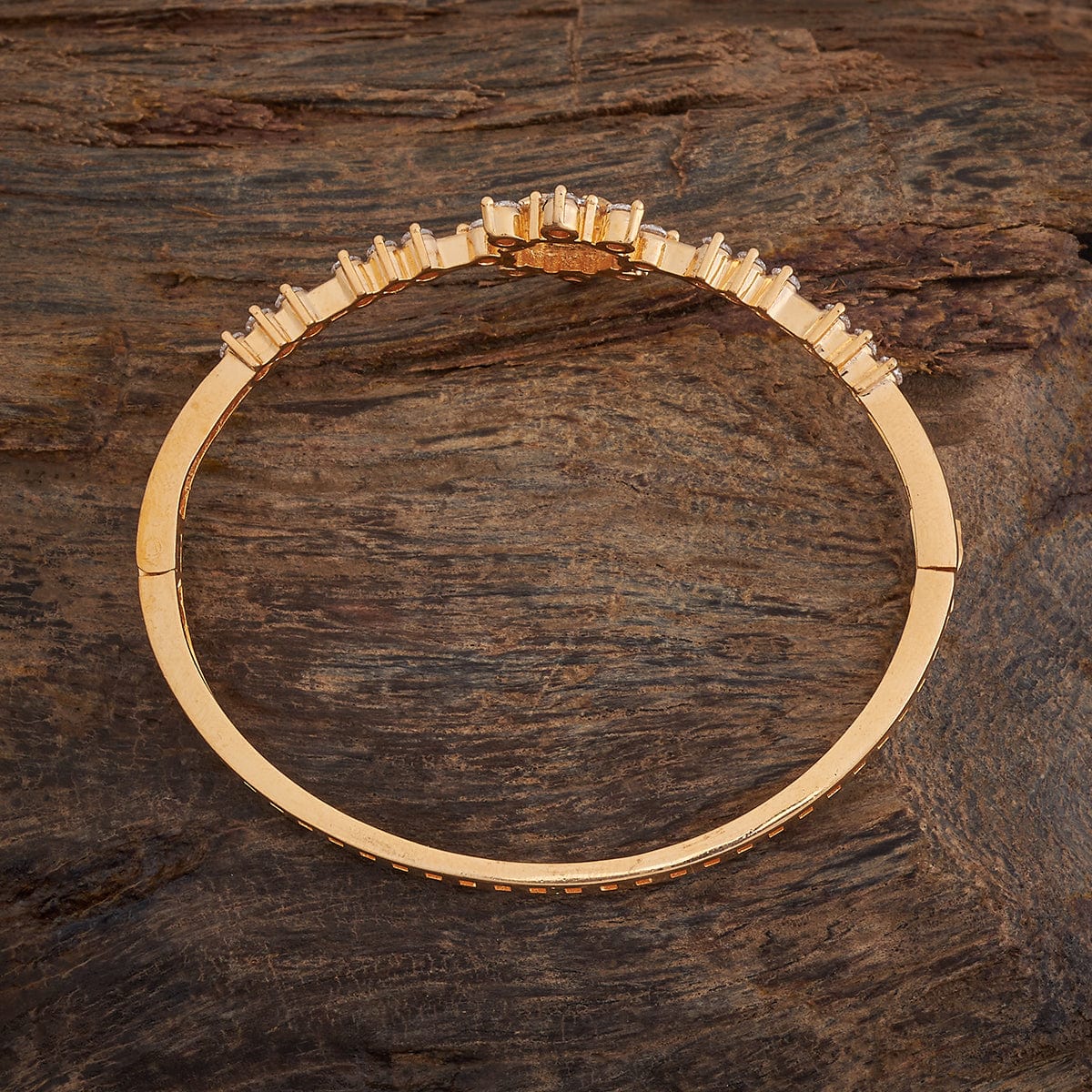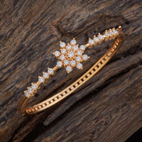 Enhance your everyday elegance with this stunning zircon kada. Featuring a beautiful flower-shaped arrangement of sparkling white zircon stones and a luxurious gold polish, this kada offers a sophisticated touch to any outfit. Its versatile design makes it ideal for daily wear, effortlessly adding a subtle yet striking shine to both casual and formal looks.