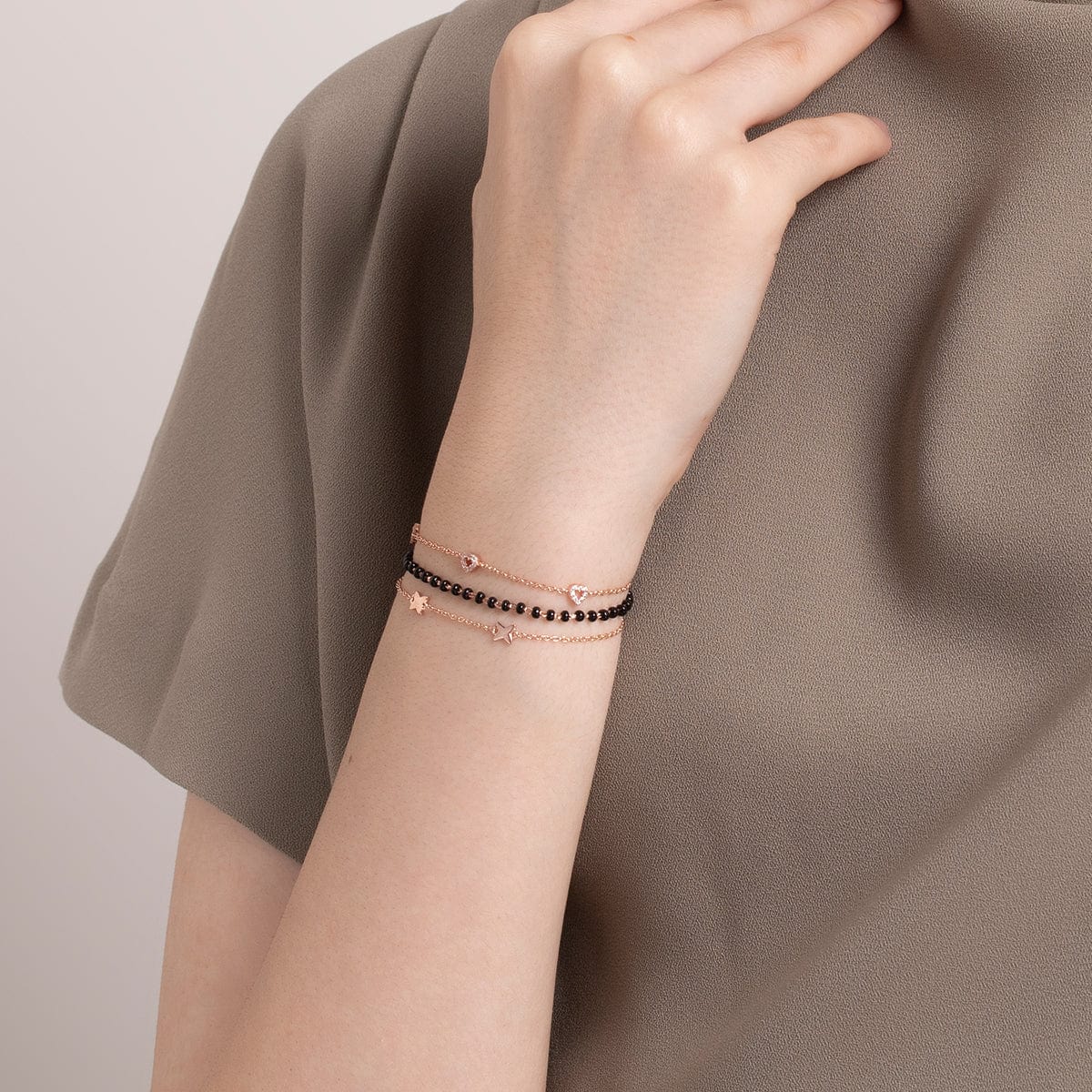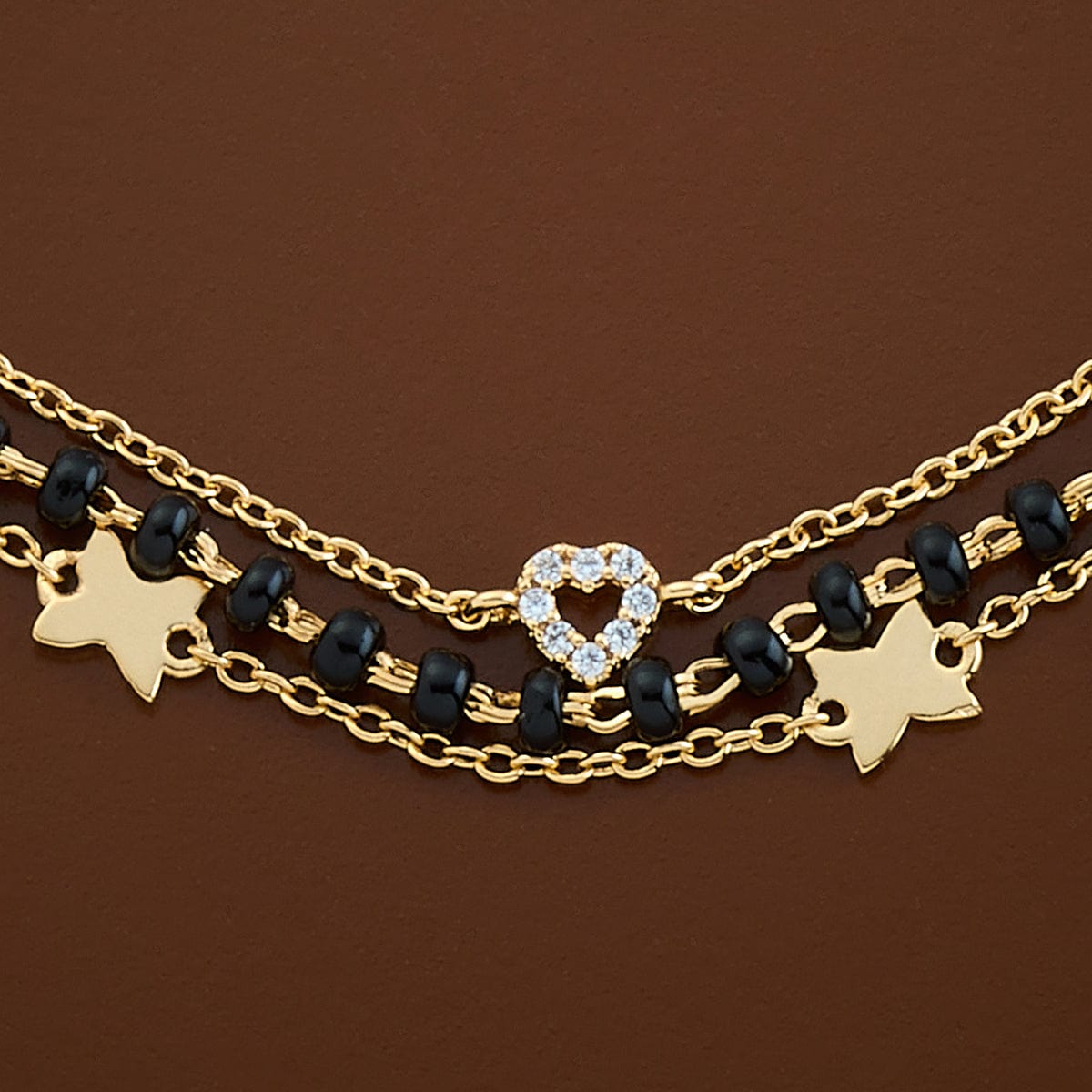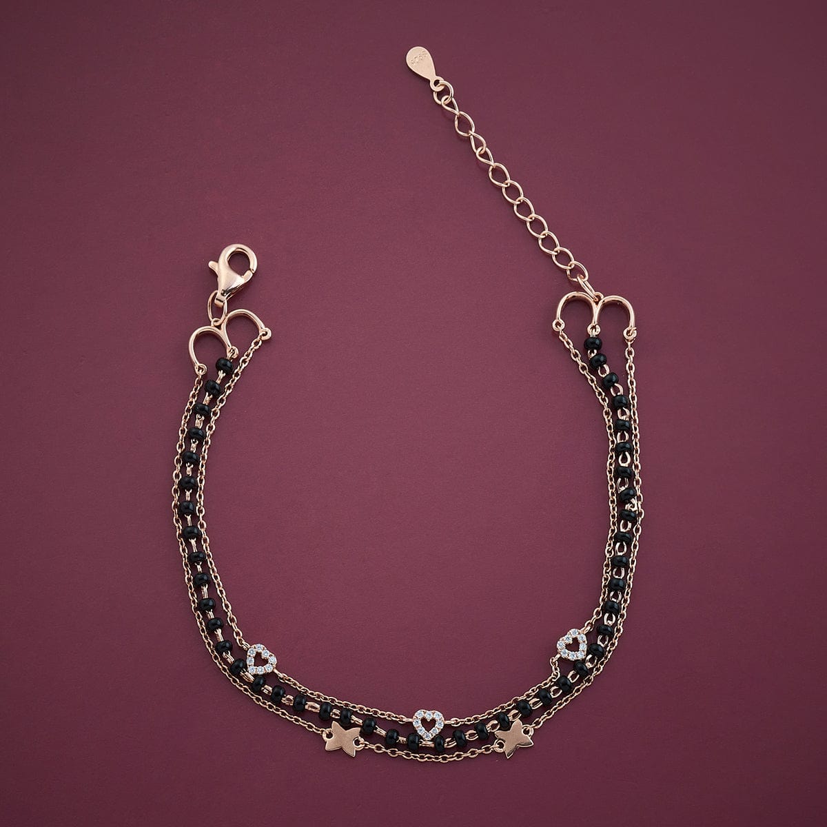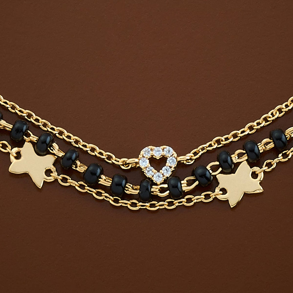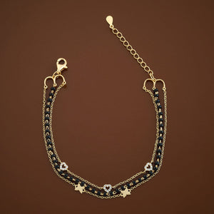 Our three-layered bracelet is a unique jewellery that is trending nowadays. The 92.5 silver offers a sturdy product at the end. The zircon stones have added a unique charm to the bracelet. The adjustable chain makes it possible for you to wear it comfortably. Choose your polish option from gold and rose-gold and rose-gold.
