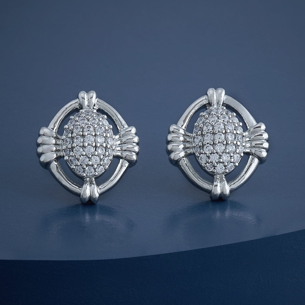 Kushal's Fashion Jewellery 92.5 Pure Silver Oval Pattern Earring