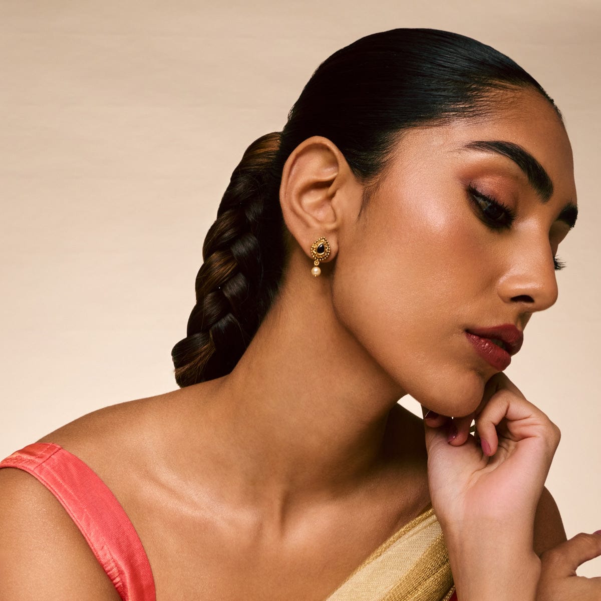 If you want stud earrings with a hanging look, our latest pair of antique earrings is your perfect option. These stud earrings get a hanging design from the beads used, and the colour options complement the gold polish. Pair these earrings with your favourite outfit for the best look.