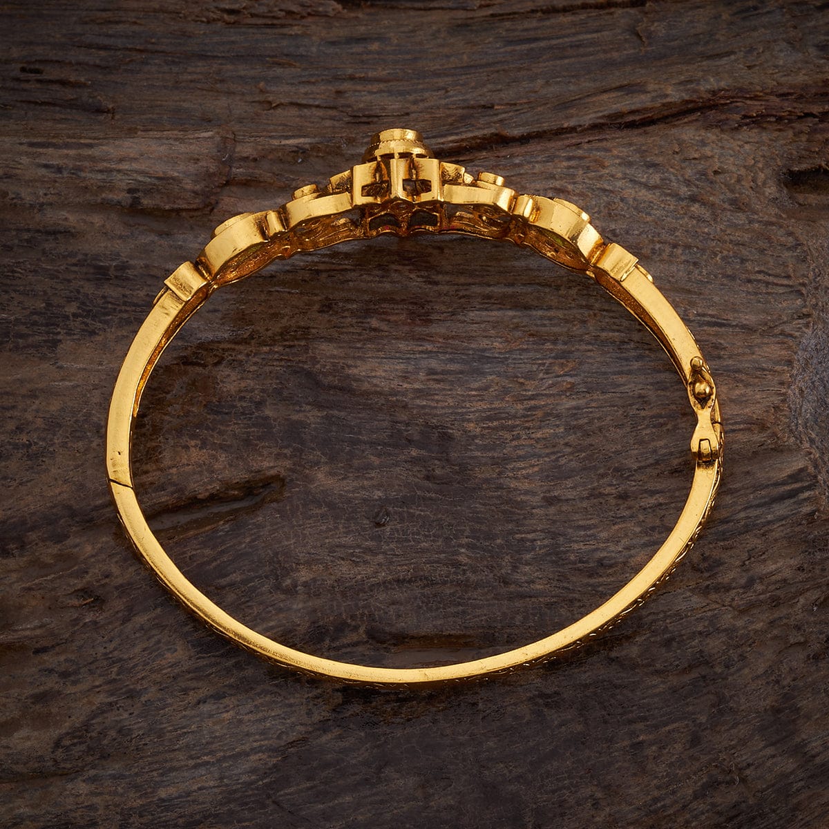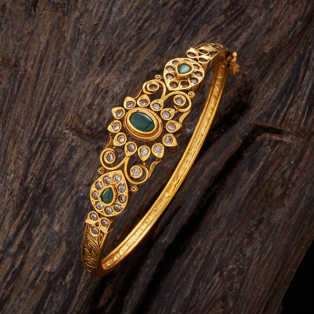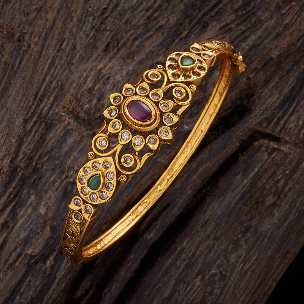 Adorn yourself with our Antique Kada! The intricate craftsmanship showcases a beautiful gold polish on a copper alloy base metal, creating a luxurious and sophisticated look. Whether it's a wedding or a casual ensemble, this eye-catching kada, with its unique design and synthetic stone embellishments, effortlessly complements any outfit. Exclusively available at Kushal, it's your opportunity to upgrade your style!