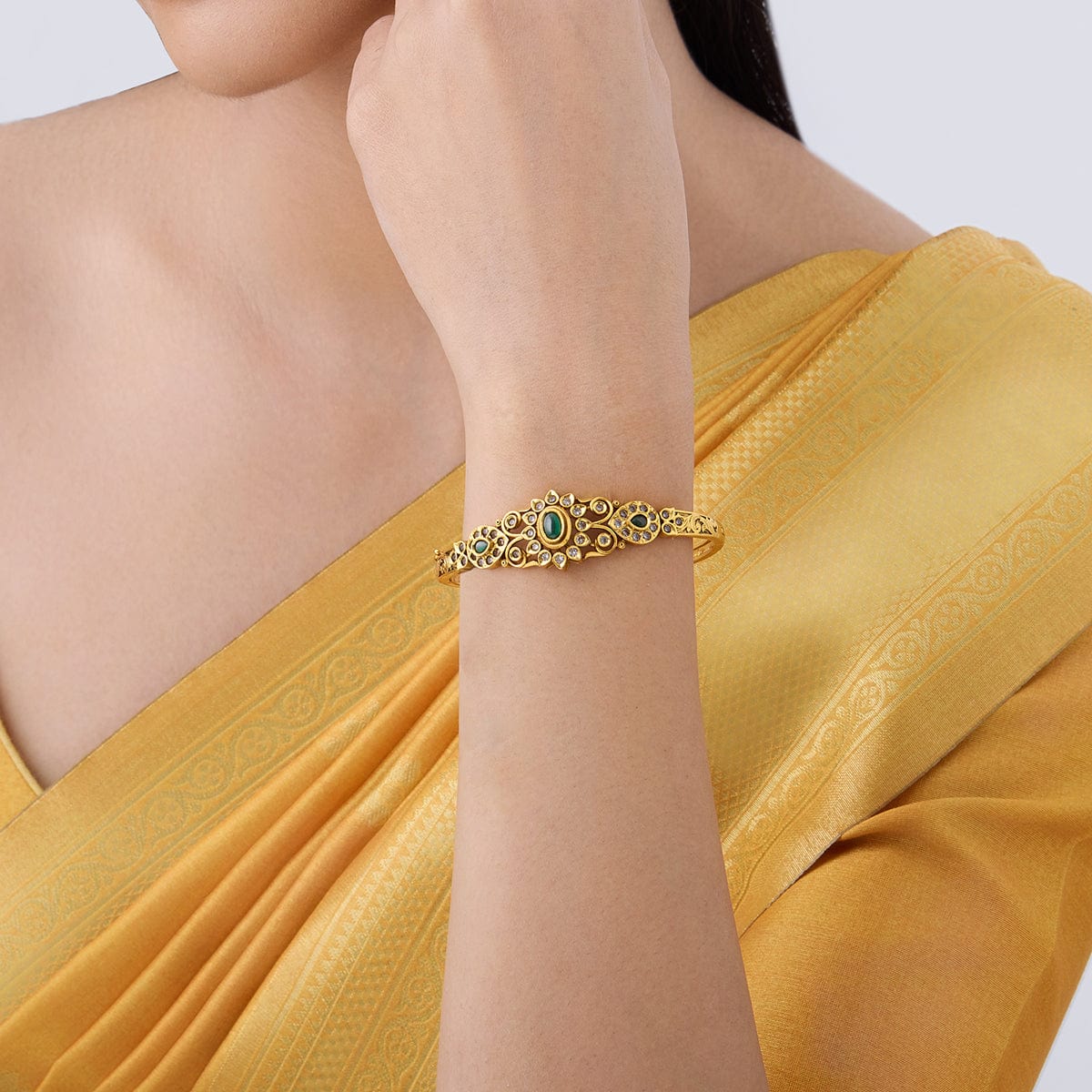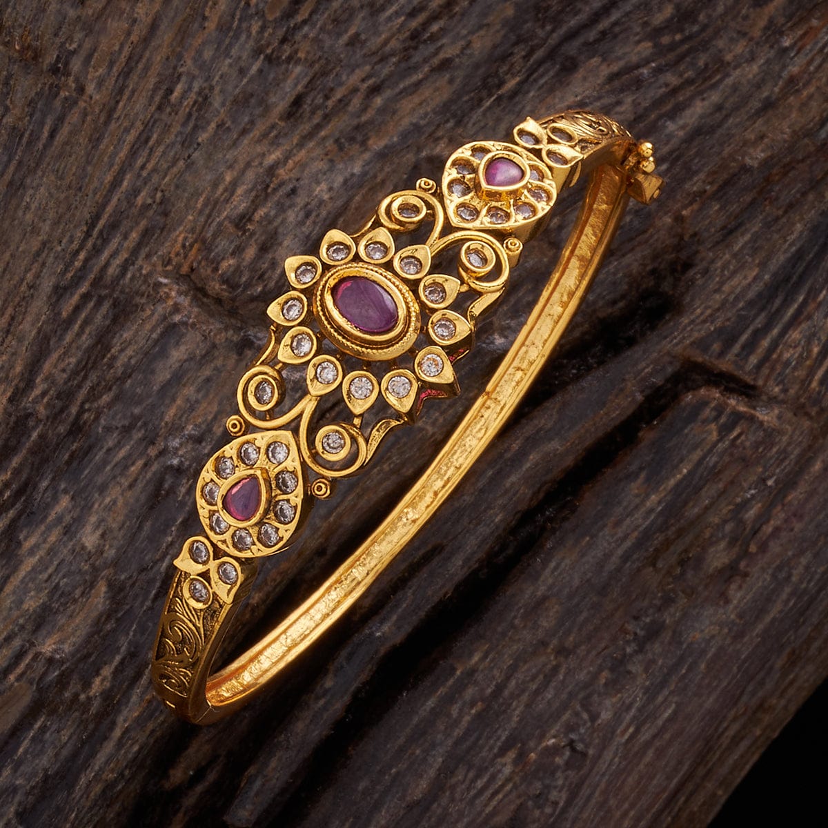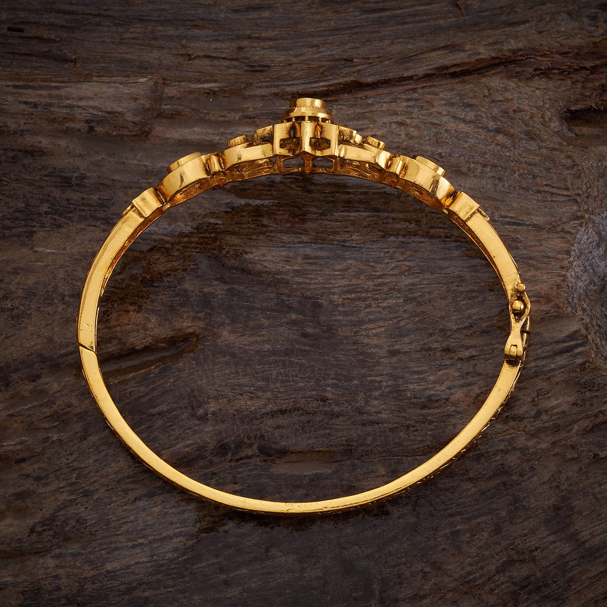 Adorn yourself with our Antique Kada! The intricate craftsmanship showcases a beautiful gold polish on a copper alloy base metal, creating a luxurious and sophisticated look. Whether it's a wedding or a casual ensemble, this eye-catching kada, with its unique design and synthetic stone embellishments, effortlessly complements any outfit. Exclusively available at Kushal, it's your opportunity to upgrade your style!