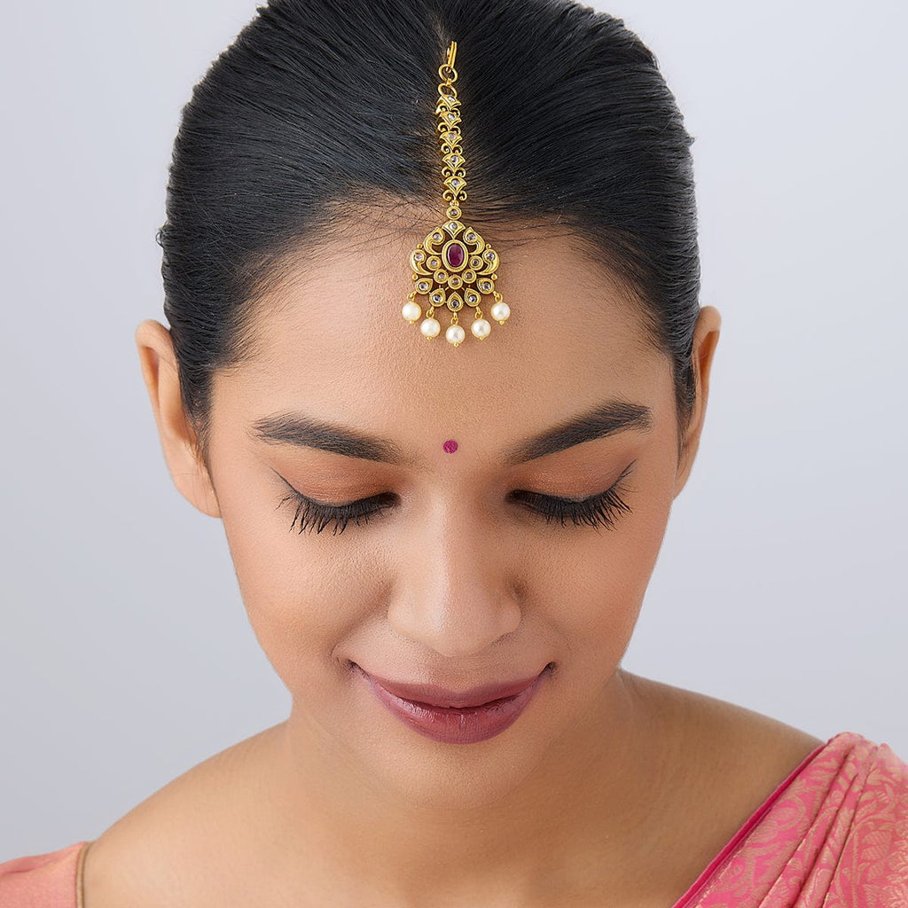 You have found the ideal traditional item right here! All you need to make a statement at your upcoming special occasion is our Antique Tikka decorated with green and red synthetic stones and beads. Its minimalist aesthetic says volumes and subtly exudes charm. Perfectly crafted, it goes well with any traditional attire and makes you stand out in any crowd.