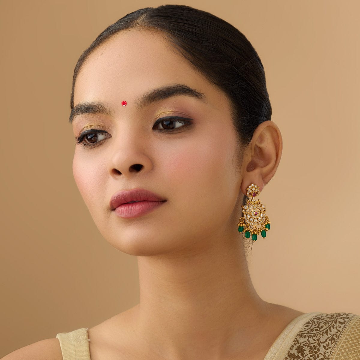 92.5 Pure Silver Peacock Design Temple Earring