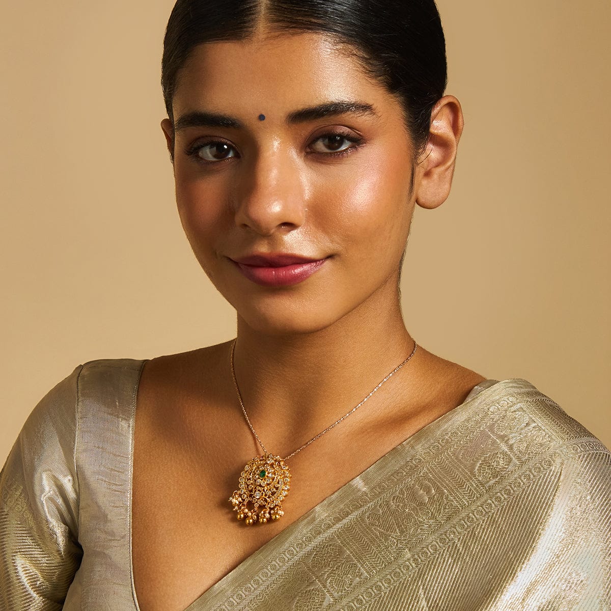 92.5 Pure Silver Flower Motif Temple Pendant